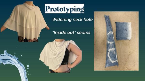 The next step for me was prototyping. I split up the collection into 3 sections: the knit "tops", the pants, and the accessories. Shown below are renderings of the 3D prototypes, the physical prototypes, and the plans I have to change the designs before I make the final.