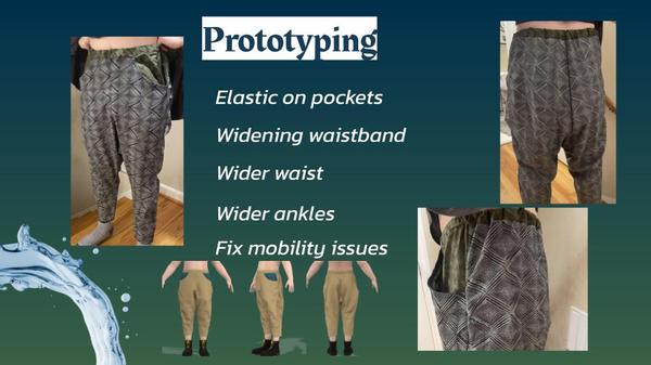 On the first prototype of the pants, the main issue that I faced had to do with mobility. My client is a very physically active person, and expressed a need for a full range of motion in their daily life. By changing the fabric for the final piece as well as make some tweaks in the pattern-making, I was able to allow for that range of motion without too much bagginess.