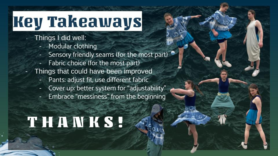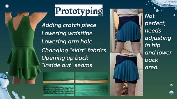 The most complicated of this first section is the bathing suit. I wanted it to fit well, but have volume where it mattered. The client wanted to show off their natural bust and hips, but wanted to minimize the attention at their crotch without the client needing to tuck (term for a process used by transfeminine individuals wherein they smooth out the crotch area by "tucking" bits away). On my second prototype, I still faced some issues with gaping in the lower back and hip area, but I was able to fix that in the final piece.