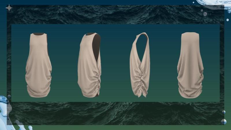Due to time constraints, I did all of my prototyping of this garment in CLO, and it turned out exactly like I wanted it. I was aiming for a simple cover up with gathering along the side that utilized the fullness within the gather to create a mermaid-like silhouette.